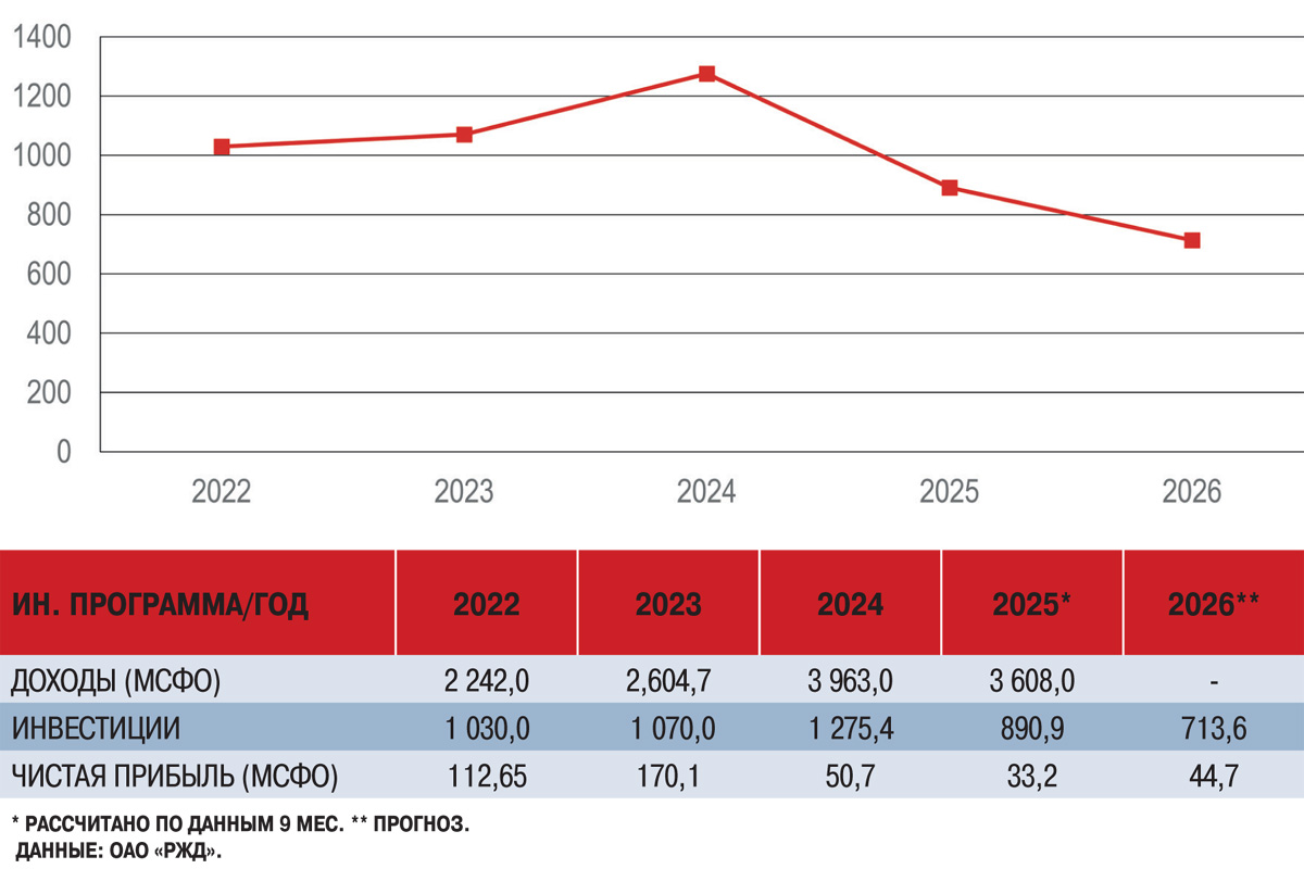 Реакция оператора оказалась предсказуемой: инвестиционная программа 2025 года была урезана на 30%, однако положения дел это не спасло. За январь – сентябрь, на фоне весьма умеренного снижения доходов, чистая прибыль ОАО «РЖД» просела ниже 25 млрд рублей – так что по итогам года данный показатель вряд ли достигнет 35 млрд рублей. Не случайно в инвестпрограмму на новый, 2026 год cовет директоров компании заложил «всего» 713,6 млрд рублей, или почти на 20% меньше прошлогоднего. Кстати, не исключено, что в ближайшем будущем и эта сумма будет существенно урезана – Минфин и Минэкономики уже рекомендовали сократить ее до 590 млрд рублей.