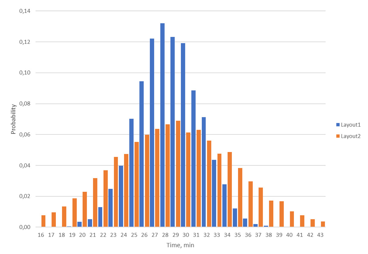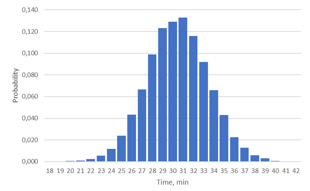 Результаты имитационного моделирования представлены в виде плотности вероятности времени выполнения операций (рис. 20).