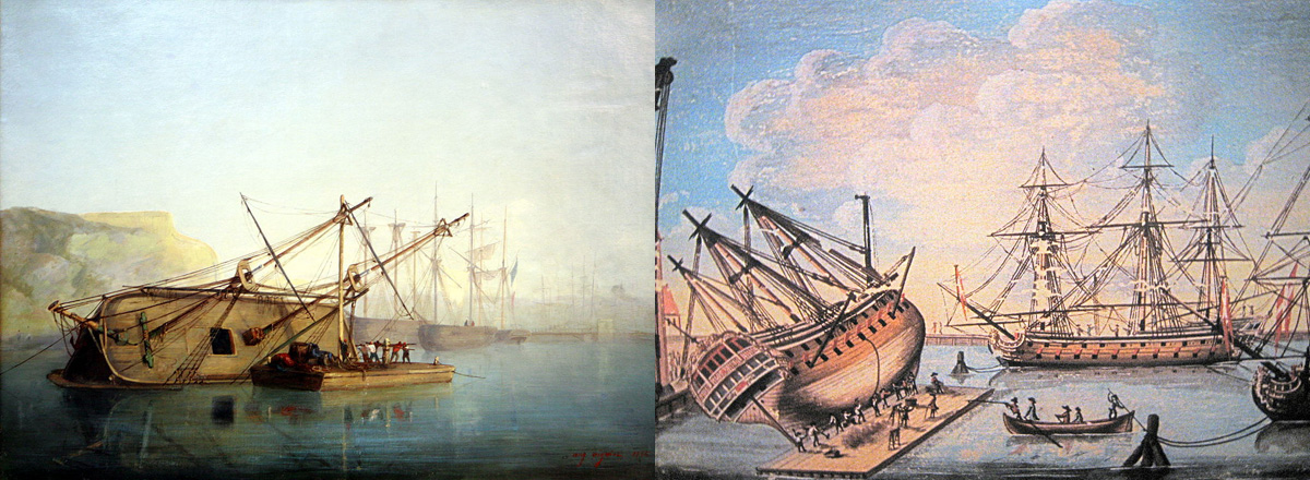 Рис. 9. Плавучий док, построенный Кристофером Уотсоном в 1785 году с бригом «Меркурий»