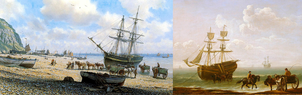 В первый период деревянного судостроения работы по подъему судов из воды на сушу были относительно простыми – их вытаскивали по лежням на катках при помощи примитивного ворота. Этим способом поднимают из воды небольшие рыболовные суда и катера и в настоящее время.