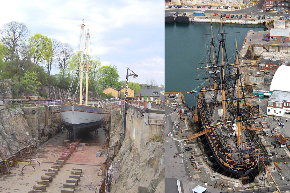 По мере того как суда становились крупнее, сухие доки стали важным строительным объектом. Для облицовки стен была использована массивная каменная кладка, а для быстрого осушения дока были добавлены большие насосы.