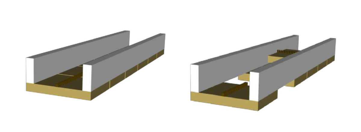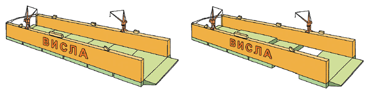 Двухкомпонентный док состоит из двух полностью функциональных и независимых друг от друга плавучих доков, которые могут быть объединены в единый плавучий док.