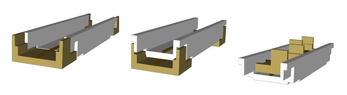 Чтобы облегчить буксировку, проектировщики обтекали нос и корму каждой секции так, чтобы они повторяли очертания корабля. Высокие башни можно было складывать на палубу на время перехода секции в океане.