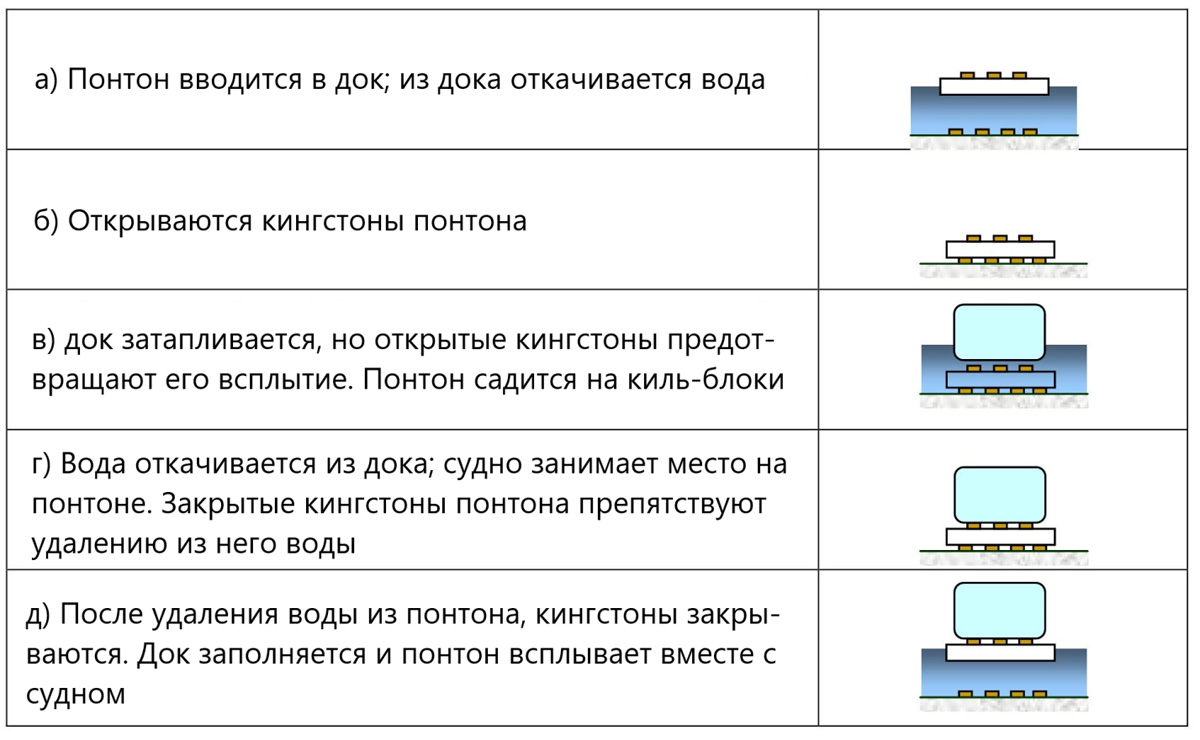Рис. 17. Последовательность самодокования дока «Дьюи»