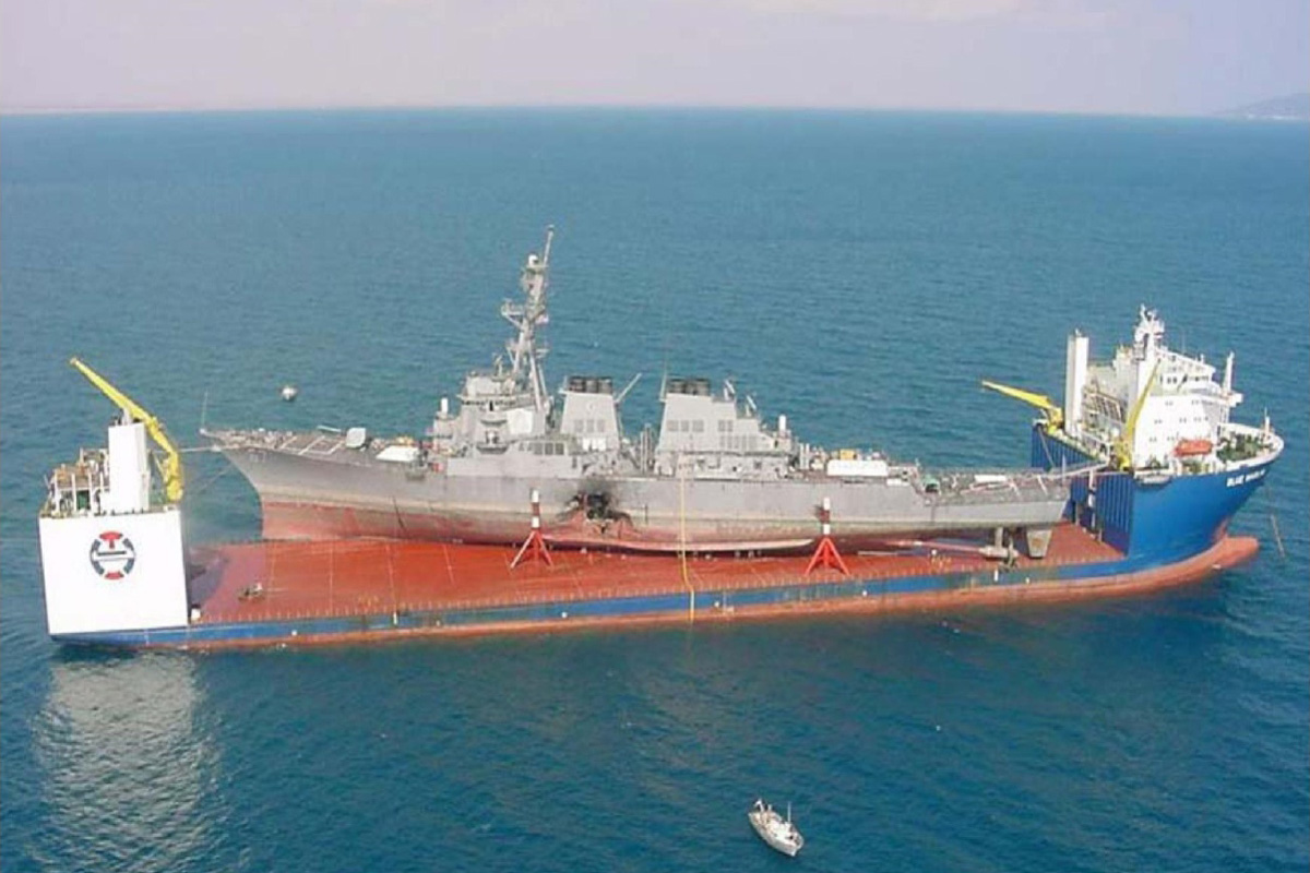 Рис. 24. Поврежденный эсминец «Cole» на борту судна-дока