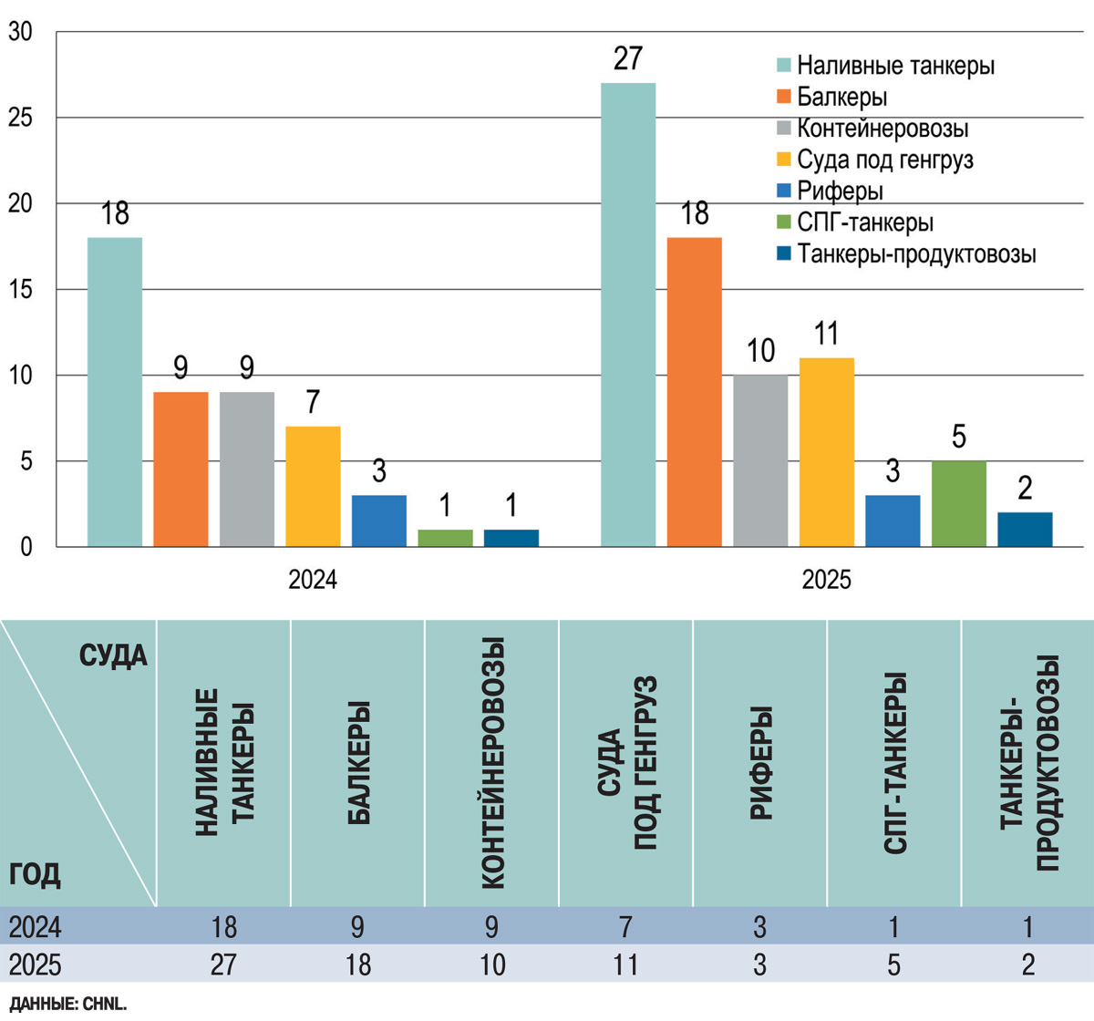 Впрочем, что тут говорить – нарастающая в отечественной экономике до катастрофичности нехватка крупнотоннажных морских судов наблюдается отнюдь не только в сегменте контейнерных перевозок и не только сейчас. При этом за 2025 год транзитный проход по Севморпути осуществили более 70 транспортных судов основных типов, что значительно превышает соответствующий показатель 2024-го – рис. 4.